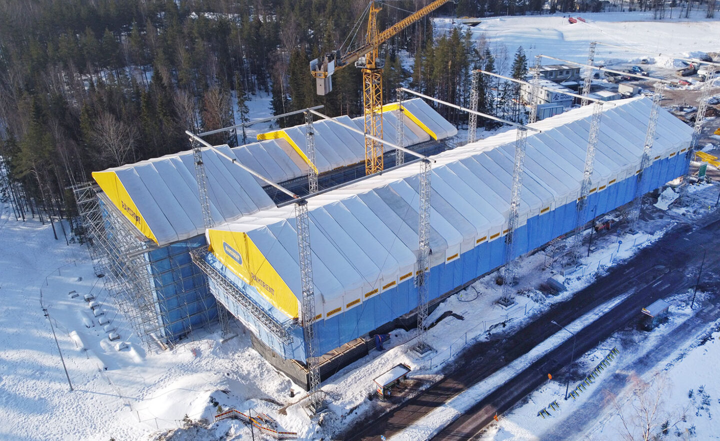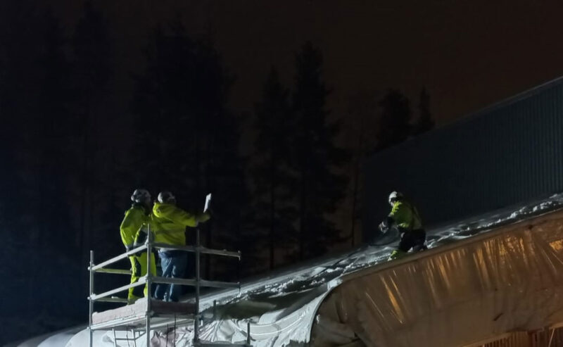 Vaikka sääsuojan alla työskentely jatkuu tehokkaana ja ilman lumitöitä, tulee kuitenkin huolehtia siitä, että lumen poistaminen sääsuojan päältä tehdään huolellisesti.