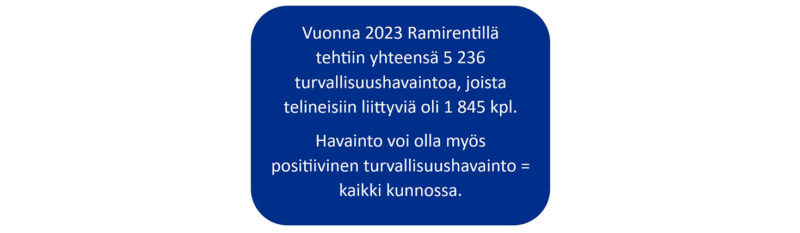 Työnjohtajamme valvovat asennuksia ja purkuja työmailla, puuttuvat aktiivisesti havaitsemiinsa turvallisuusrikkeisiin ja kouluttavat sekä opastavat tarvittaessa. Teemme jatkuvasti turvallisuushavaintoja, jotka kirjaamme erilliseen järjestelmään. Vuosittain teemme tuhansia turvallisuushavaintoja, jotka käsitellään eri yksiköissä, sovitaan korjaavat toimenpiteet ja järjestetään tarvittaessa tietoiskuja tai koulutusta, mikäli havainnot sitä edellyttävät. Arvioimme säännöllisesti myös urakoitsijoidemme työn laatua.