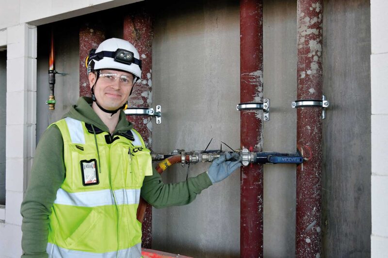 Talotekniikka-asiantuntija Samuli Salo NCC:ltä kertoo, että myöskään työmaan lämmitysratkaisujen suunnittelu ei ollut läpihuutojuttu.