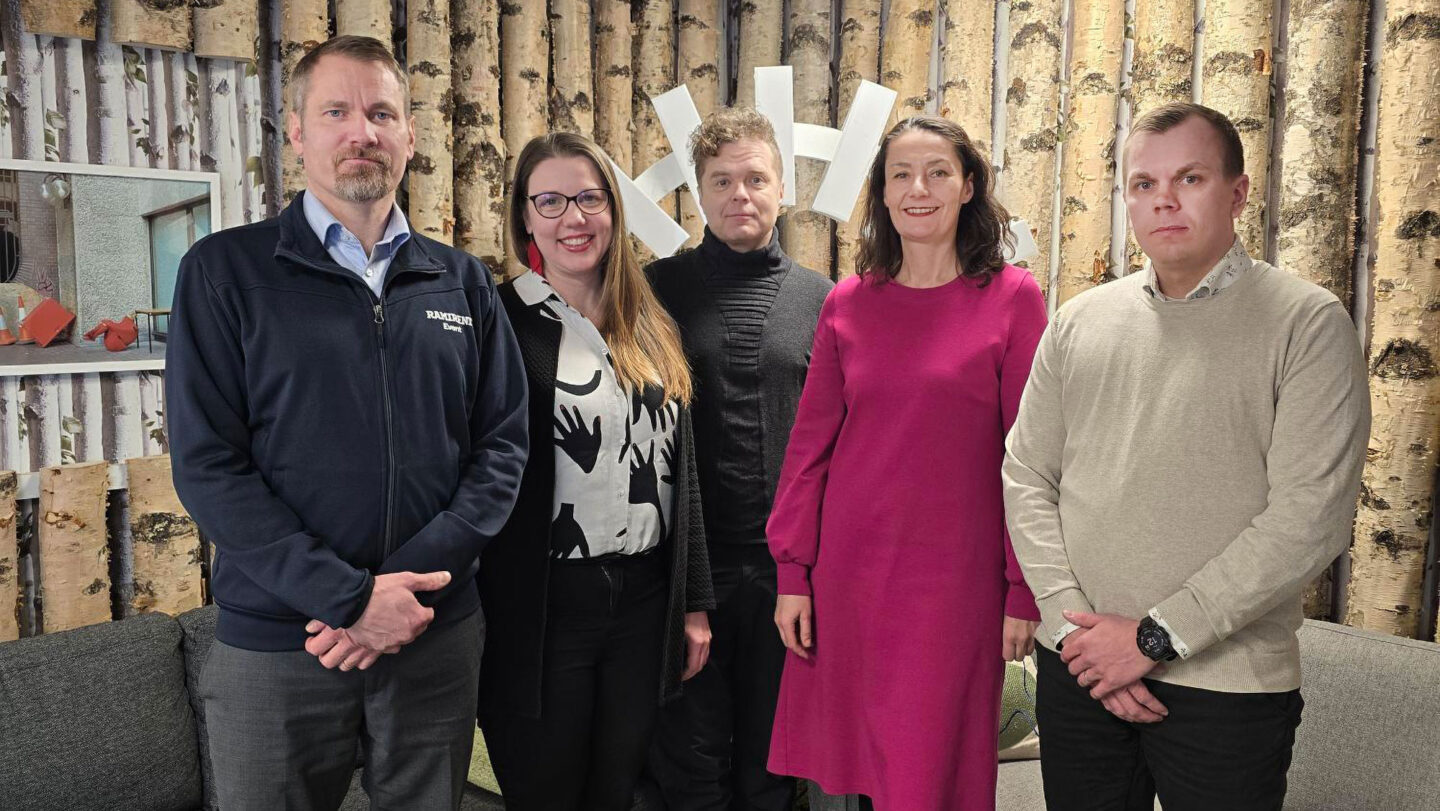 Pääkuvassa vasemmalta projektipäällikkö Juha Hämäläinen Ramirentiltä, Oulun juhlaviikkojen vastaava tuottaja Anu Lähteenmäki, Delta Lifen taiteellinen johtaja Jukka Takalo, Oulun juhlaviikkojen toiminnanjohtaja Pia Alatorvinen ja myyntipäällikkö Markus Heikkala Ramirentiltä.