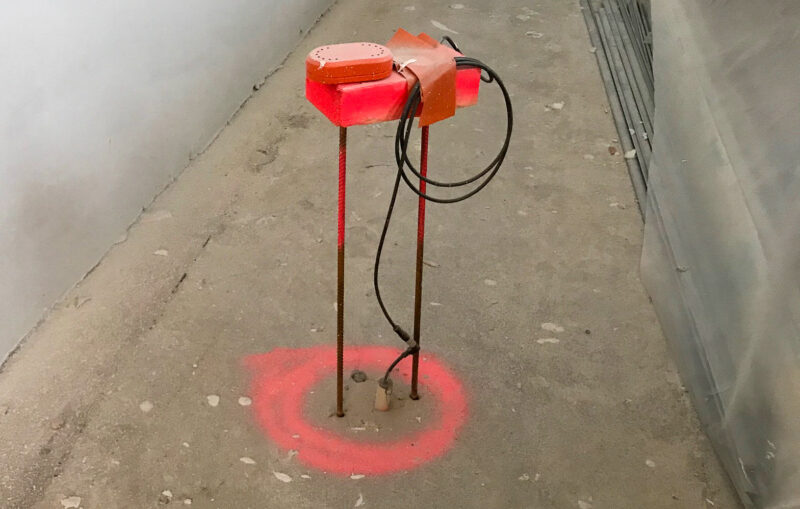 Valuja tehtiin neljässä kerroksessa, joissa jokaisessa on noin 300 m2 lattiapinta-ala. Noin kahden päivän kuluttua lattianvalusta betoniin porattiin yksi porareikä, johon asennettiin mitta-anturi yhdistettynä lähettimeen, joka keräsi ja lähetti mittausdataa. Antureita lähettimellä oli yksi per kerros ja tietoja keräävä yksikkö eli ”keräysboksi” sijaitsi neljännessä kerroksessa.